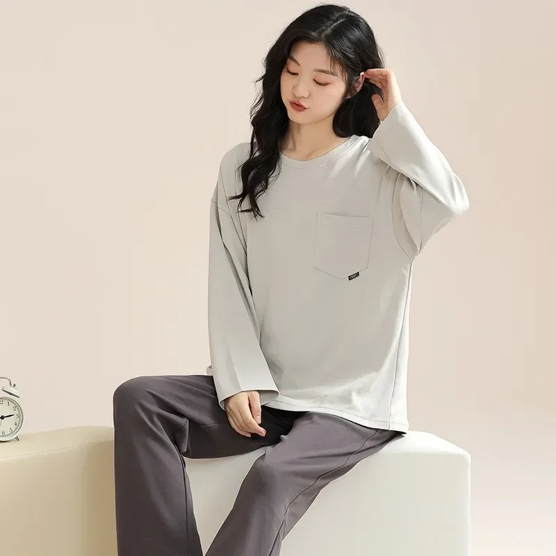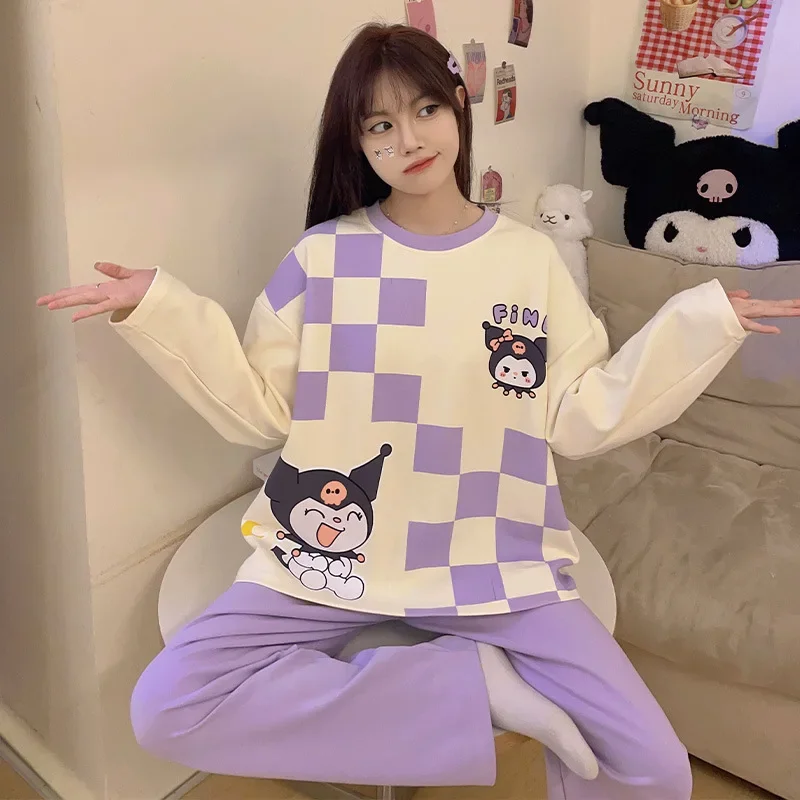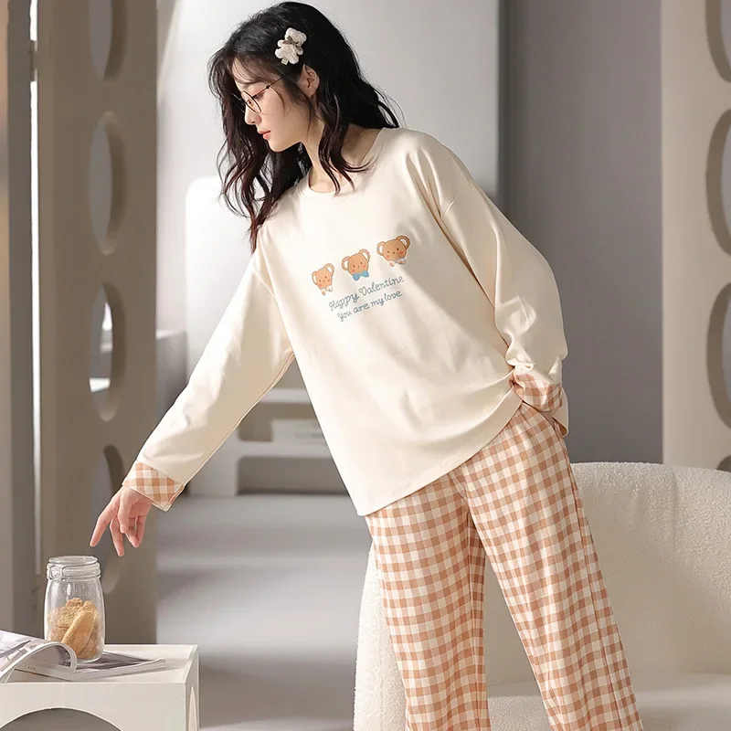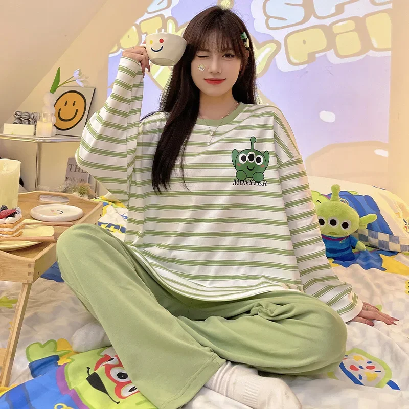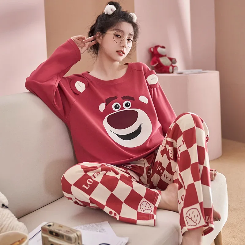 Women's Fall Winter Pajamas Women's Long-sleeved Pants Leisure Suit Women's Homewear Combed Cotton Cute Cartoon Homewear Suit Ms