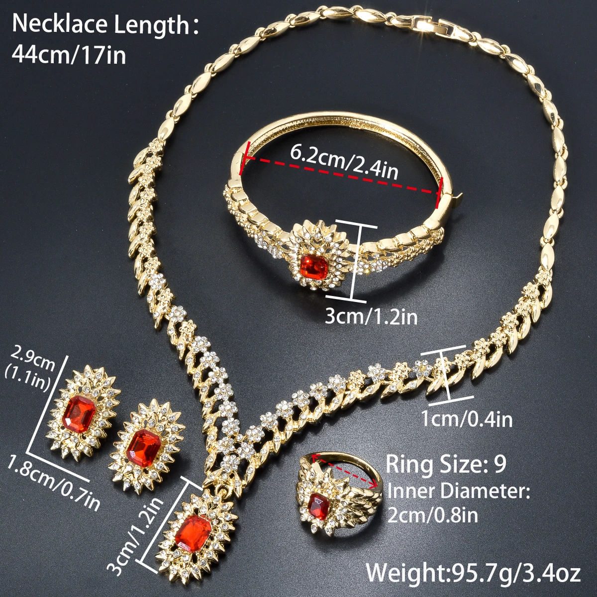Jewelry set type: Earrings Necklace Bracelet Ring
